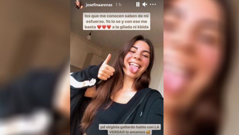 En ese momento, la joven Josefina estaba mirando Intrusos y respondió ante los rumores de acomodo con mucha personalidad. "Los que me conocen saben de mi esfuerzo. Yo lo se y con eso me basta. A la gilada ni cabida. Virginia Gallardo habló con la verdad. La amamos", escribió la participante a través de una historia de Instagram.