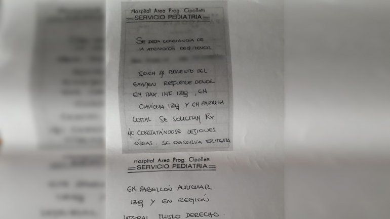 Por las heridas en su mandíbula, oído y abdomen debió recibir atención médica en el área de pediatría del hospital local. La denuncia formal en la fiscalía fue realizada el mismo día.