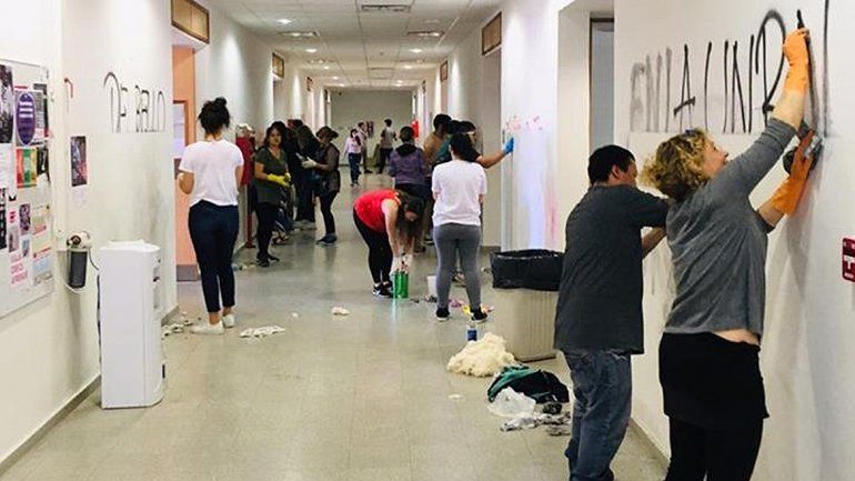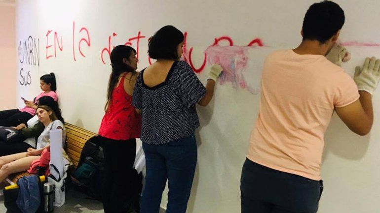 Estudiantes y docentes limpiaron el escrache en la UNRN