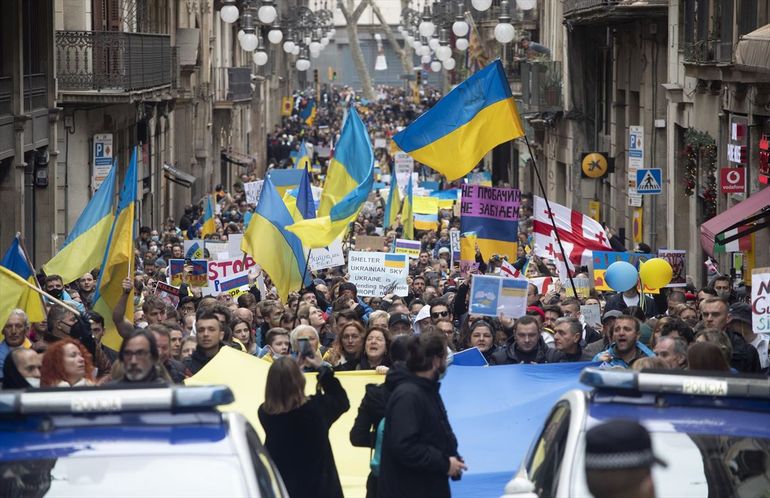 En Barcelona, cerca de quinientas personas, según fuentes de la Guardia Urbana, en su mayoría ucranianos y bielorrusos, protestaron contra de la guerra en Ucrania y la política prorrusa de Bielorrusia. Los manifestantes se concentraron en una céntrica plaza donde acamparon un grupo de ucranianos y varios de ellos iniciaron una huelga de hambre.
