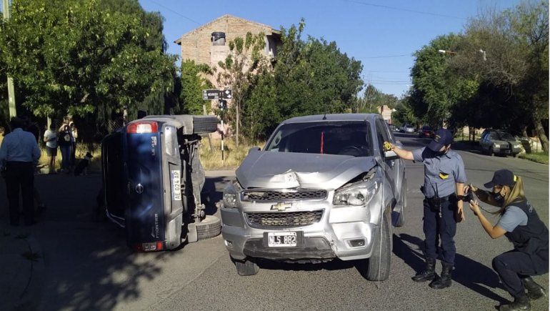 Un fuerte choque en el barrio Jorge Newbery terminó con una camioneta volcada casi sobre una vereda. La Policía realizó diversas mediciones para determinar si hubo imprudencia de los conductores, que circulaban por calles Roca y Río Neuquén y colisionaron con violencia en la intersección, según manifestaron fuentes policiales. Ocurrió poco después de las 18 de esta tarde.
