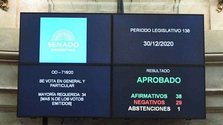 Impulsada por el Presidente -incluso desde antes de asumir el Gobierno-, la Interrupción Voluntaria del Embarazo (IVE) fue convertida en ley por la cámara alta el 30 de diciembre pasado, con el voto favorable de 39 senadores y el rechazo de otros 29.