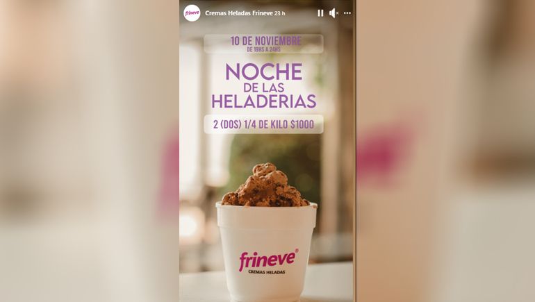 En tanto, también tendrá disponible esta promoción en la Heladería Frineve (Mariano Moreno 35), pero de 18 a 22. Allí el dos por uno costará 1000 pesos.