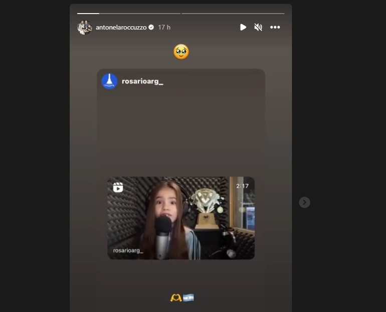 Rocuzzo, que tiene más de 20 millones de seguidores en su cuenta, compartió un fragmento del video acompañado de tres emojis, una carita emocionada, dos manos formando un corazón, y otro de una bandera argentina.