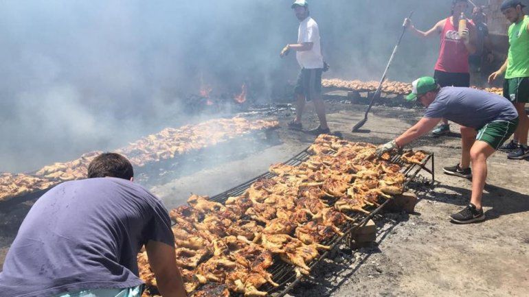 Fueron más de 300 pollos los que tiraron a la parrilla hoy a la vera de las ex canchas de paddle. A cargo del asado estuvieron profes y amigos de Joaquín, quien jugaba en las hormigas verdes en la categoría 99.
