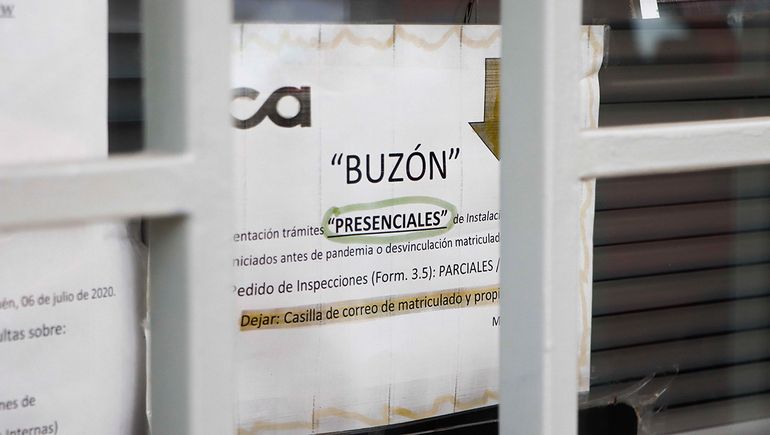 Pese a que ya no es obligación el uso de barbijo, ni el mantener distancia por más de dos metros, esas oficinas se muestran prácticamente cerradas y hay usuarios que tienen que golpear las manos para que salga un empleado, incluso llegando con turnos tramitados en la web.