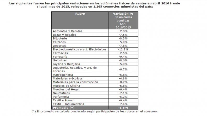 Las ventas minoristas cayeron 6,6% en abril