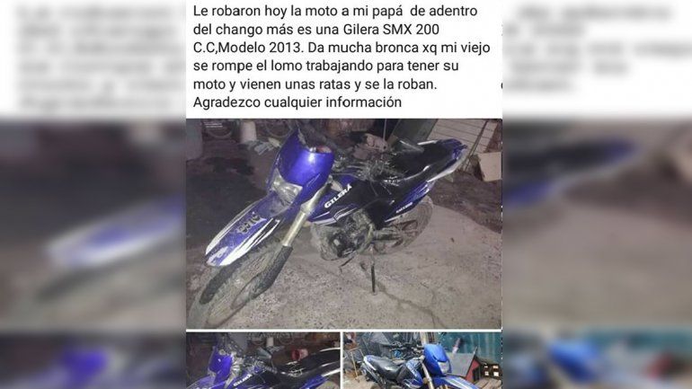 "Se rompe el lomo trabajando para comprar su moto y se la roban", expresaron los hijos del damnificado por Facebook.