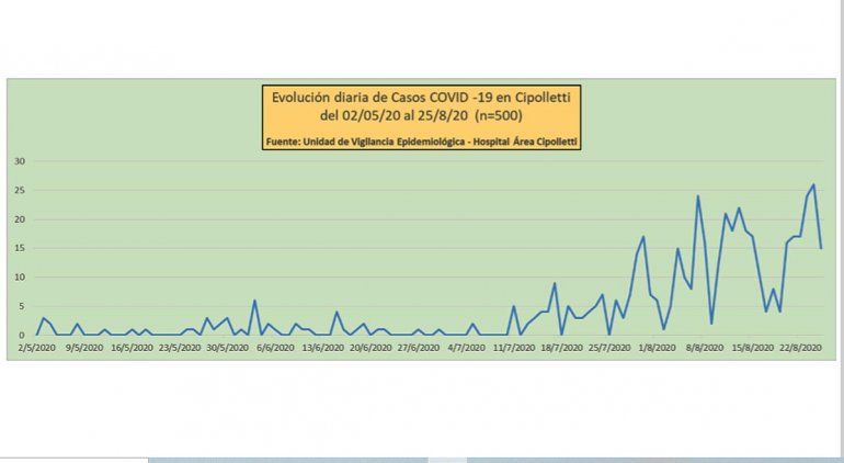 El 15 de julio pasado LM Cipolletti publicó que un asado había desatado una ola de contagios de coronavirus en la ciudad. En ese momento la jefa de Epidemiología, María Luz Riera, contó que se trató de una familia numerosa que aprovechó el feriado y se juntó a construir la losa de una vivienda, y luego finalizaron con un asado. De inmediato se contabilizaron 9 personas con Covid-19, todos asistentes de ese mismo evento, pero el brote continuó afectando a más contactos estrechos.
