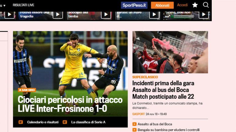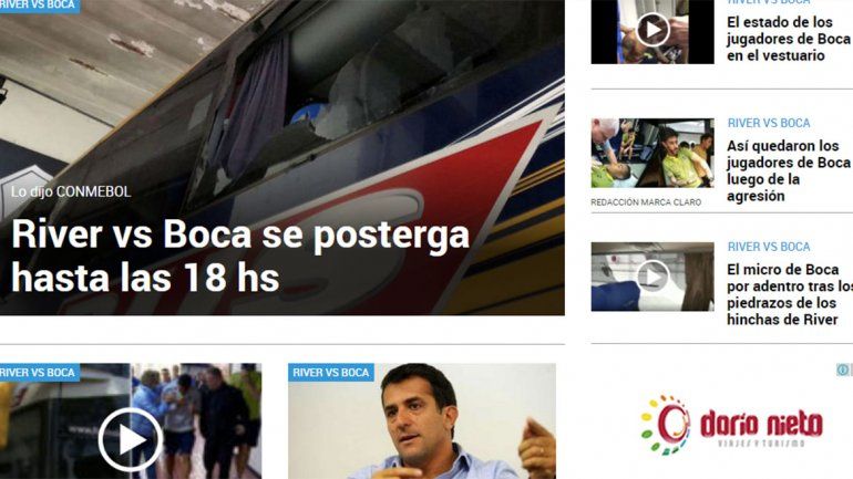 La Superfinal más esperada y por la que todo el mundo tenía interés fue opacada por los incidentes en las inmediaciones del Monumental, cuando el plantel de Boca Juniors se acercaba al estadio. Jugadores heridos, una multitud enfrentada con la policía, hinchas con entrada en mano que se quedaron afuera y, finalmente, el partido suspendido ocuparon los principales portales de las noticias deportivas de todo el planeta.