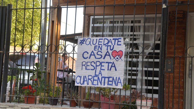 Por la mañana, en el barrio Luis Piedrabuena, dos casas enfrentadas por nomenclatura se unieron en un mismo mensaje. “Quedate en casa, respetá la cuarentena” y “Cuidate, quedate en tu casa” se podía leer claramente del otro lado de la reja en Gonzalez Larrosa y Juan Domingo Perón.