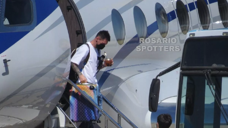 El capitán de la Selección argentina de fútbol llegó a bordo de su avión privado alrededor de las 10:06 al Aeropuerto Internacional Rosario Islas Malvinas de la ciudad santafecina, procedente de París.