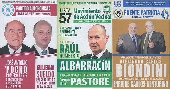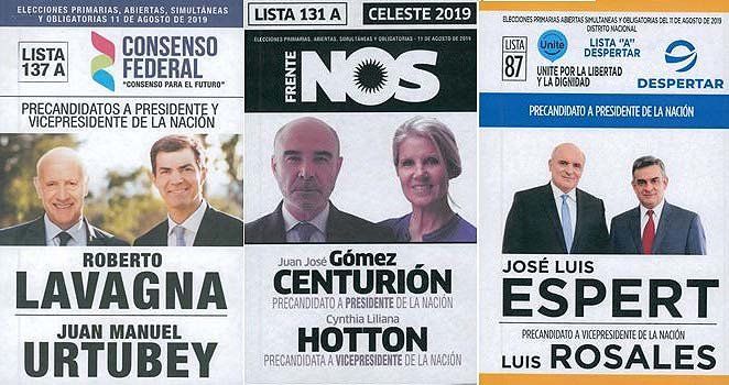 Roberto Lavagna y Juan Manuel Urtubey son los candidatos de Consenso Federal por la lista 137 A; Juan José Gómez Centurión y Cynthia Hotton los candidatos del Frente Nos lista 131 A; José Luis Espert y Luís Rosales van por el partido Frente Despertar lista 87; la lista 36 A del partido Autonomista lleva como candidato a José Antonio “Pocho” Romero Feris y Guillermo Sueldo; el Movimiento de Acción Vecinal de la lista 57 postula a Raúl Humberto Albarracín y Sergio Darío Pastores; la lista 132 del Frente Patriota lleva como candidatos a Alejandro Carlos Biondini y Enrique Carlos Venturio.