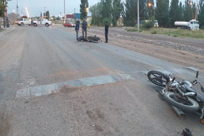 Mañana accidentada en Cipolletti: dos motociclistas que transitaban por Circunvalación y Venezuela chocaron de frente. El impacto fue muy fuerte y ambos terminaron tirados sobre el asfalto con dolores en distintas partes de su cuerpo. Según informó el jefe de la Comisaría 24, Javier Yáñez, uno de los lesionados "intentó evitar el lomo de burro o reductor de velocidad" y colisionó de manera frontal con el otro que circulaba en sentido contrario.