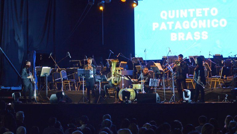 La música tuvo lugar en este nuevo aniversario. Los integrantes del Quinteto Patagónico Brass deleitaron a los presentes con un repertorio de tango acompañado de percusión con un homenaje a Astor Piazzolla y un popurrí de los Beatles.