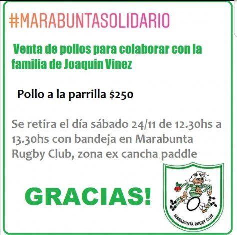 La actividad se realizará el sábado en el predio de Marabunta, y quienes puedan colaborar durante el cierre del año podrán comprar un pollo. Todo lo recaudado será destinado para colaborar con la familia Vinez.