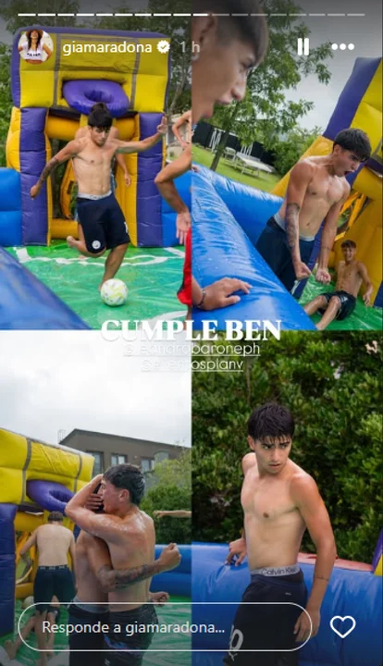 Benjamín Agüero Maradona, hijo de Gianinna Maradona y Sergio “Kun” Agüero, vivió un cumpleaños que quedará en la memoria: sus 17 años fueron celebrados con una fiesta temática de fútbol al aire libre y coronados con un espectacular regalo por parte de sus padres.