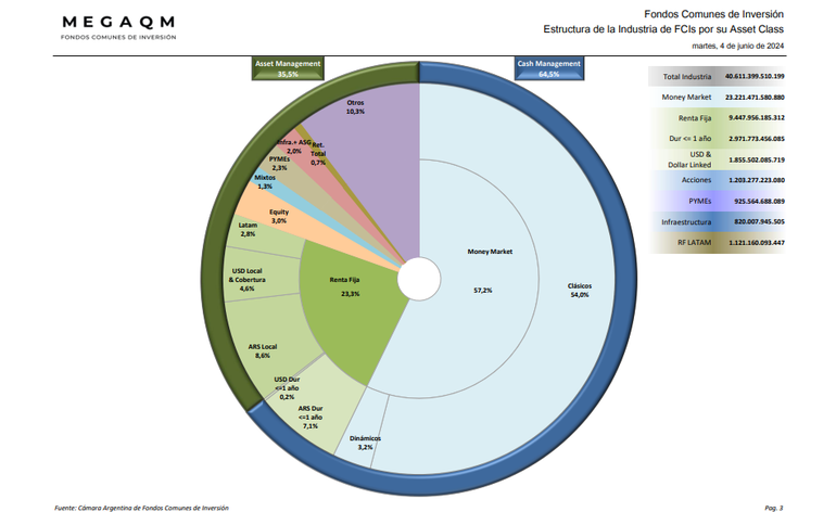 De acuerdo con datos de la industria, los Fondos Comunes de Inversión administran un total de $40,6 billones, de los cuales los denominados Money Market (que permiten retiro inmediato) representan $23,2 billones, es decir, el 57,2%, lo que indica que si bien la gente trata de invertir su dinero, está más segura si lo puede retirar cuando lo desea.