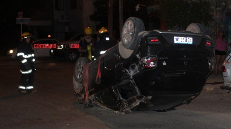 Un choque seguido de un vuelco alteró la madrugada de los vecinos de Centenario. Es que el conductor de una Renault Sandero Stepway perdió el control del vehículo y terminó chocando con el cordón cuneta, un poste de luz y un cesto de basura.