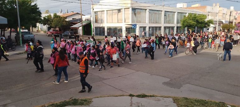 La manifestación se inició en la plaza San Martín, desde donde transitó por calles céntricas. Con la participaron organizaciones sociales, sindicales y políticas, se dirigían hacia la Comisaría de la Familia, donde realizaban una radio abierta, para luego dirigirse a la sede de la Fiscalía local.