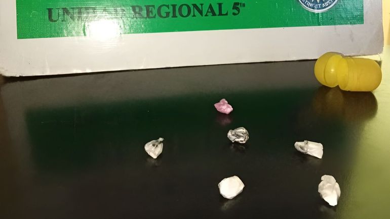 Al momento de ser atrapados a bordo de una moto tipo enduro, a uno de ellos les encontraron en un curioso escondite varios envoltorios con cocaína, informaron fuentes de la dependencia policial.
