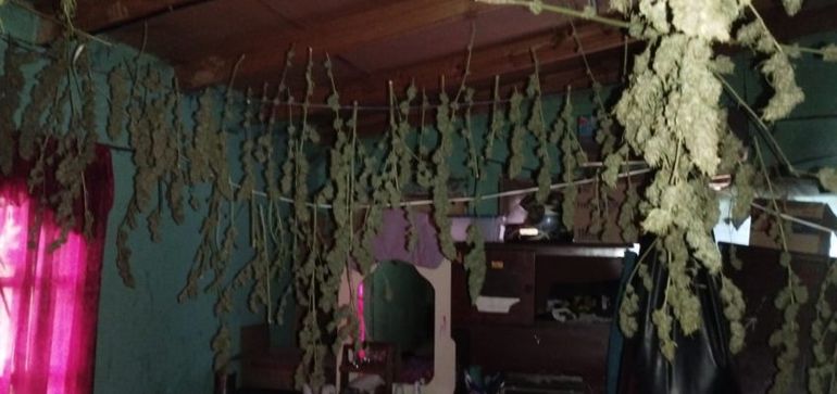 En una de las viviendas se secuestraron 11 plantas de Cannabis Sativa de 2 metros de alto, hojas de cogollos y ramas colgadas en cuerdas en proceso de secado dentro de una habitación que había sido acondicionada. A raíz del hallazgo se le dio intervención a la Fiscal Federal, que dispuso la notificación a la propietaria del inmueble.