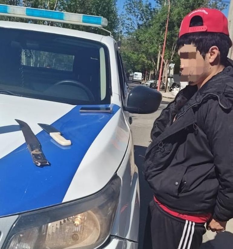 Ante el llamado, un móvil policial a cargo de la sargento Yanina Mercado y el cabo primero Cristian Domínguez acudió al sector y localizó al sospechoso. Durante el cacheo preventivo, los uniformados hallaron entre sus prendas dos armas blancas: un cuchillo con mango blanco y otro tipo machete con cabo negro.