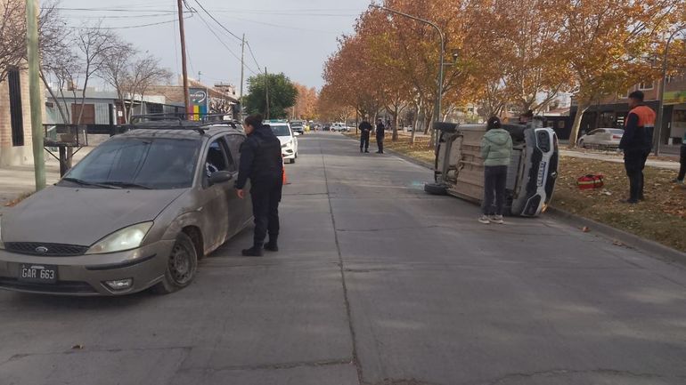 El hecho ocurrió en horas del mediodía de este jueves y participaron un Ford Focus y un Renault Kwid, el que quedó volcado sobre su lateral izquierdo.