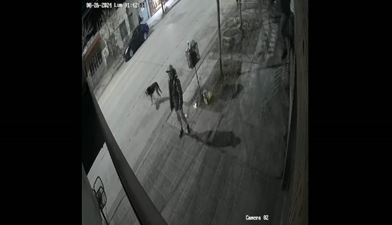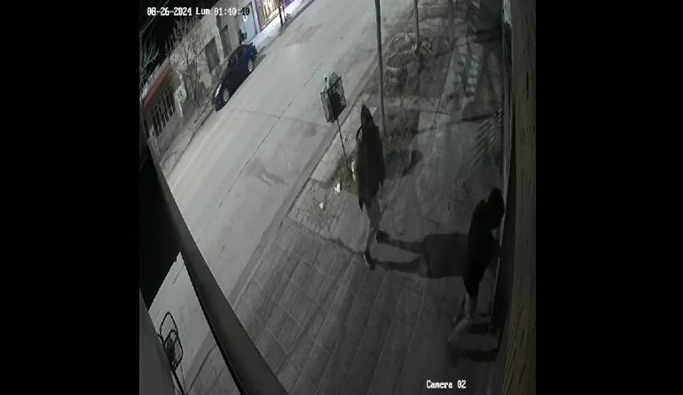 Si bien al principio no consiguieron abrir la puerta y se van, a los pocos segundos regresan -acompañados por perros- y uno de ellos trepa, pero vuelve a bajar, mientras el otro hace de campana. Entonces se retiran. Pero al pasar cruzan algunas palabras con el barrendero.
