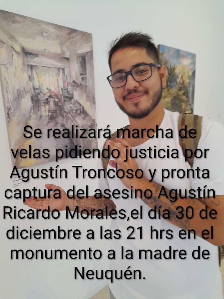 Este martes a las 21 se realizará una marcha en Neuquén por el esclarecimiento del crimen de Agustín Troncoso, de 26 años, ocurrido el domingo 7 de este mes en el barrio Costa Norte de Cipolletti.