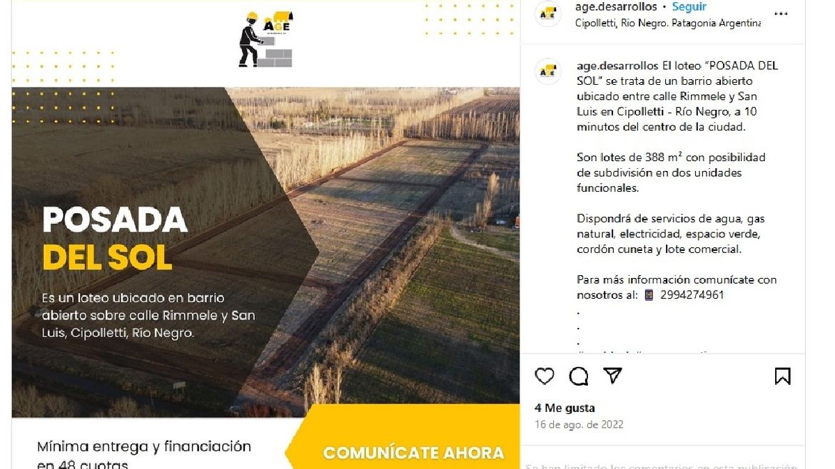 También expusieron informes del Municipio de Cipolletti que aclaró que el loteo Posadas del Sol había sido aprobado, pero que no contaba con la “mensura de fraccionamiento y escritura declarativa de parcelas resultantes”, por lo que no recibieron documentación referida a la titularidad de los inmuebles que se proyectaban en el fraccionamiento.