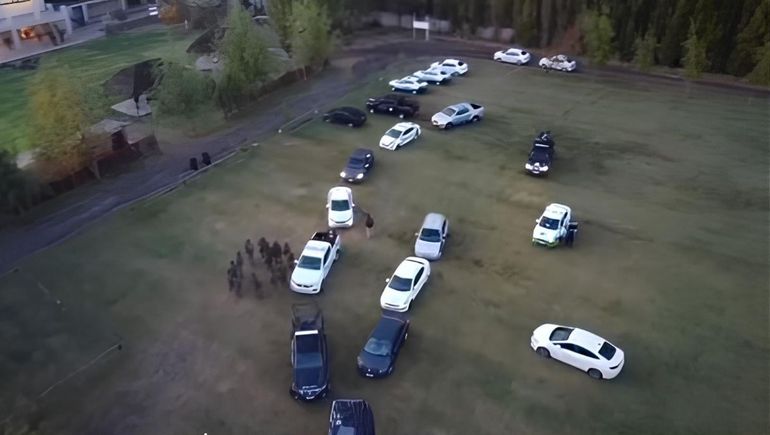 A bordo de una decena de vehículos, el personal se concentró previamente en un complejo de la zona rural, donde se coordinaron los movimientos a seguir.