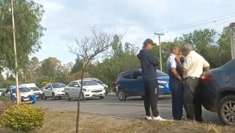 No obstante, tras un apretón de manos, el hombre mayor de edad, quien conducía el último auto, marca Peugeot 206 gris, intentó agredir a la familia del auto que trasladaba a una niña a la escuela. Se trataba de un remis, un auto de alquiler, que fue impactado directamente por el Peugeot.