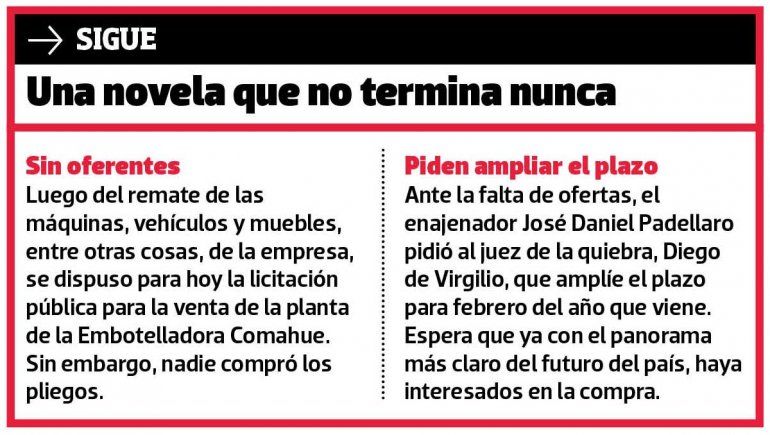 Desde ya que para la quiebra resultaría más conveniente ampliar el plazo para las ofertas, y en eso confían, pero es algo que definirá el juez De Virgilio.