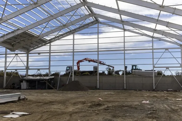 La extraña construcción de un galpón en Parque Industrial