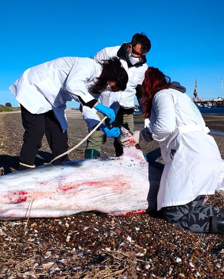 Durante la noche de este miércoles, guardaparques y Prefectura retiraron el cuerpo de la zona de marea para preservarlo. Ya por la mañana, un equipo interdisciplinario realizó una necropsia completa.