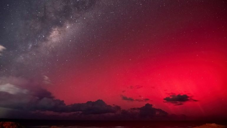 Las fascinantes fotos de las auroras australes en Las Grutas