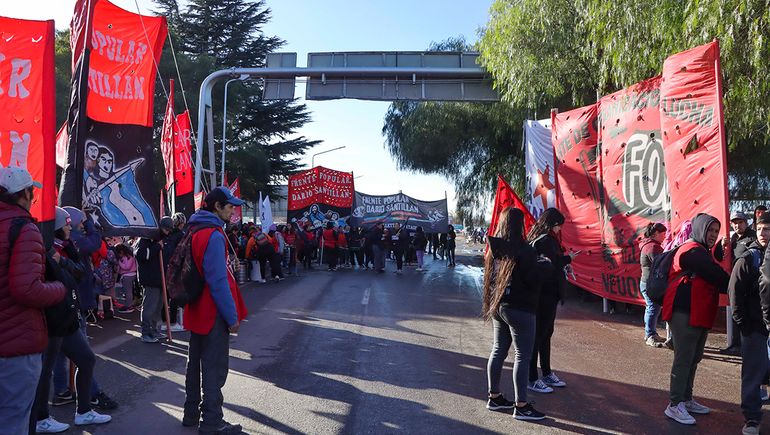 Cientos de militantes habían llegado hasta la rotonda de las Rutas 22 y 151 alrededor de las 11, previo a haber concentrado en la plaza San Martín.