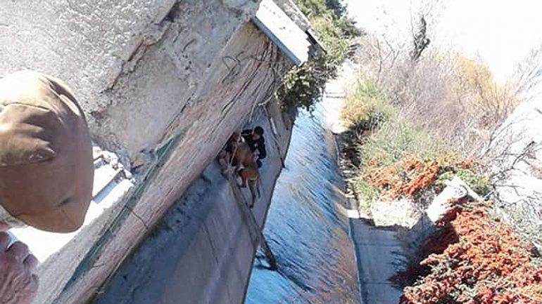 Esta tarde el personal de Protección Ciudadana recibió un aviso advirtiendo que un perro se encontraba atrapado en el interior de un canal de riego cementado, que atraviesa el barrio Belgrano, detrás de la Terminal de Ómnibus.