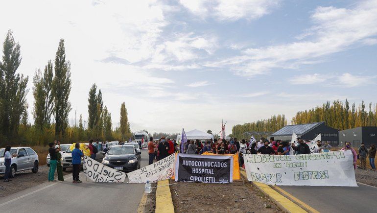 Cerca de las 10 un nutrido grupo de trabajadores del hospital cipoleño acompañado por organizaciones sociales y el gremio de docentes Unter, llegaron hasta la rotonda de Ruta Nacional 151 y Avenida Arturo Illia (Circunvalación), apostándose en el acceso al tercer puente.