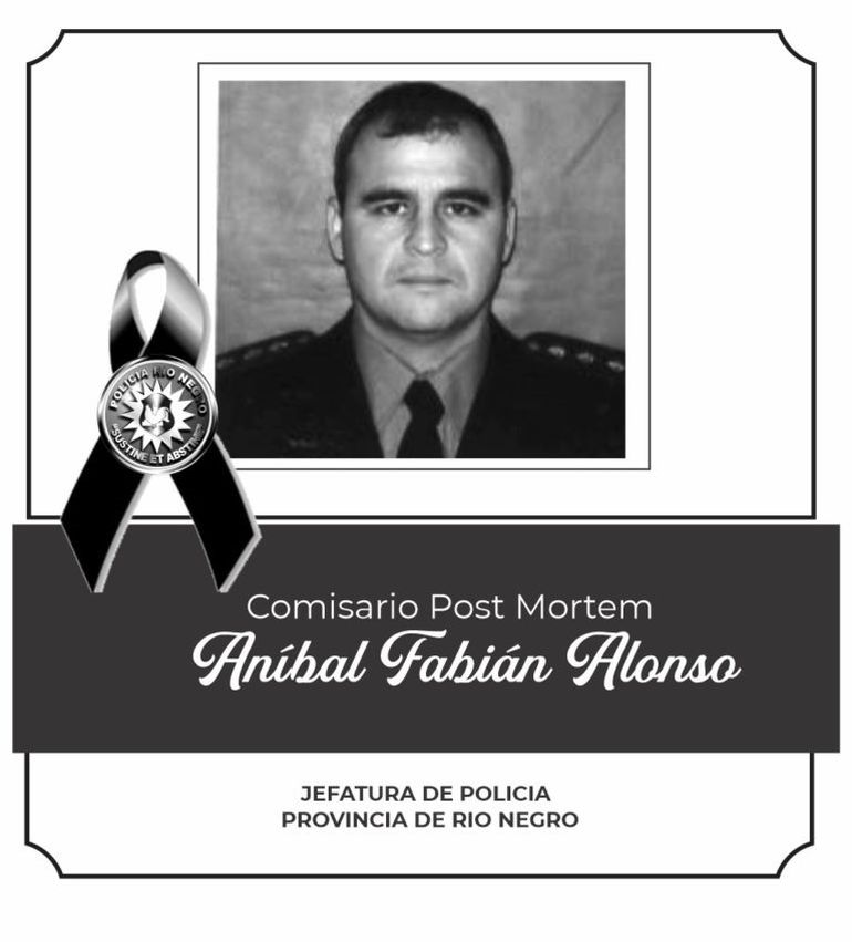 El lunes 17 de abril se conmemoró un nuevo aniversario del fallecimiento del Comisario Aníbal Fabián Alonso, quien perdió la vida en cumplimiento del deber en la localidad de Pilcaniyeu. La Jefatura de Policía de Río Negro, en 2020, decidió honrar su memoria modificando la denominación del Destacamento 136 del Paraje Las Bayas.