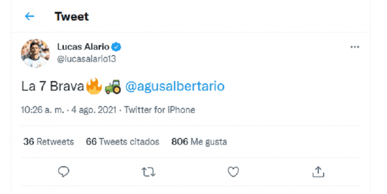En septiembre de este año, Agustina Albertario posó con un buzo de la Selección Argentina de fútbol -aparentemente de Alario- junto a sus compañeras del Royal Leopold.