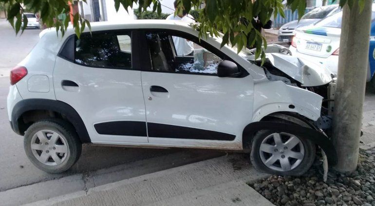 El auto quedó en el lugar y los importantes daños materiales se pueden advertir a simple vista, sobre todo en su parte delantera con la que chocó contra el poste de cemento, Por el fuerte golpe se activó el airbag del volante y amortiguó el impacto. El joven fue dado de alta a media mañana,