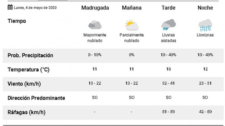 Desde el Servicio Meteorológico Nacional anunciaron que, para hoy, están pronosticadas fuertes ráfagas de viento, mientras que mañana, se esperan lluvias aisladas y lloviznas.