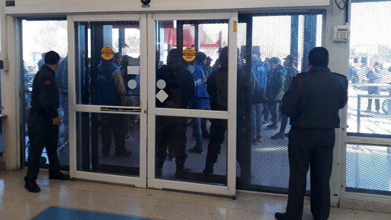 Allí se quedaron con bombos y quema de cubiertas exigiendo la entrega de alimentos para las familias. De inmediato se montó un fuerte operativo policial con más de 50 efectivos desde adentro del local comercial que cerró sus puertas.