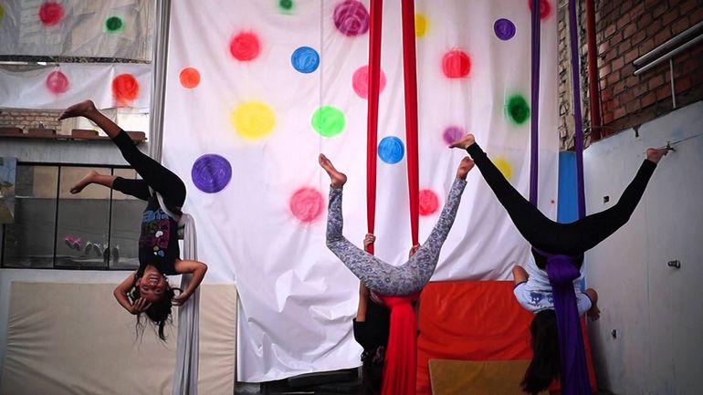 La danza aérea, también conocida como gimnasia aérea o acrobacia en tela "es una disciplina que surge de un proceso de fusión y evolución de varias otras disciplinas deportivas y artísticas", indica el sitio Dancemotion.