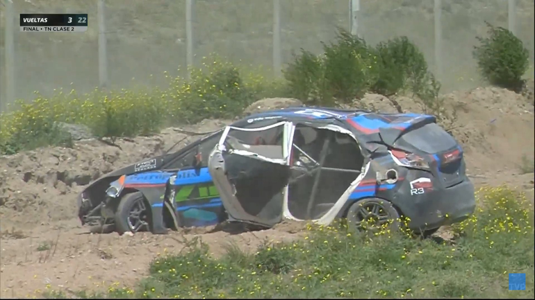 El Fiesta Kinetic levantó una gran cantidad de polvo luego de semejante accidente. La transmisión mostró el estado del vehículo y los daños en el chasis que generaron las vueltas que dio, dando una muestra más de la peligrosidad del incidente. Pero lo peor fueron los segundos que transcurrieron sin que saliera del auto.