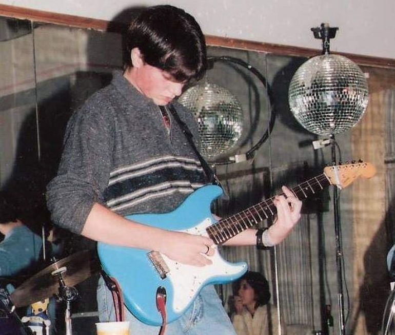 Su viejo se la compró un tiempo después que de empezara a tomar clases y pasó de una vieja acústica con la que experimentó los primeros rasguidos al sonido de una Stratocaster de los 90' Squier Japan by Fender eléctrica: ¡todo un flash!