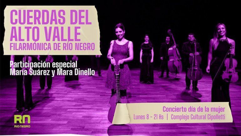 El concierto tendrá lugar este 8 de marzo con la presentación del Ensamble Cuerdas del Alto Valle y la participación especial de María Suarez en voz y guitarra, y Mara Diniello en arpa. El repertorio incluirá obras clásicas del repertorio latinoamericano y obras de María Suarez, especialmente arregladas para la ocasión.