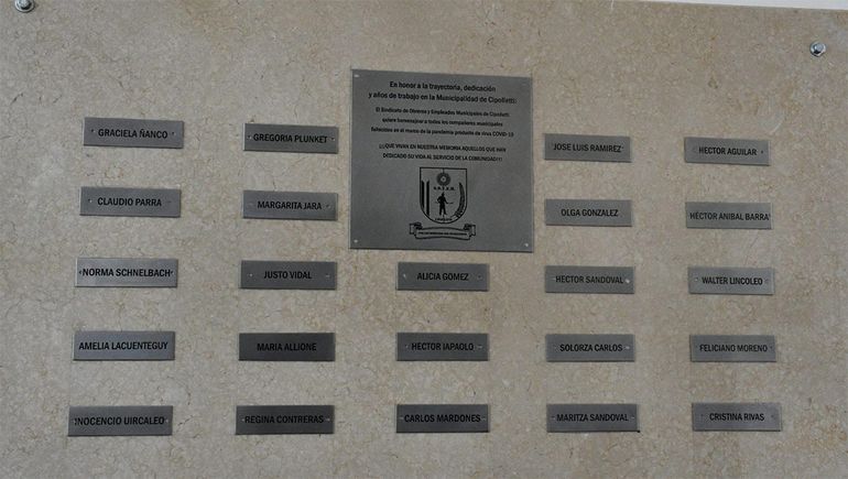 De esta forma, se instaló en el cementerio local una placa con los nombres de los 23 empleados municipales que murieron durante la pandemia del COVID-19.
